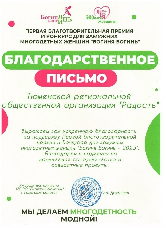 Общественная организация многодетных семей Тюменской области «Радость»